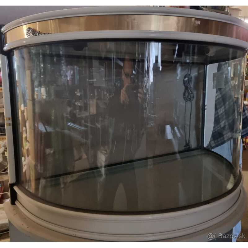 Skleněné akvárium o objemu 200l (100cm šířka, výška 60cm). Horní a spodní rám s krytem je kovový (ne umělina). Svícení je prostřednictvím neonové trubice (není součástí). Akvárium se prodává bez nábytku.