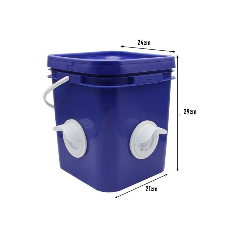Krmný automat pro drůbež. Vědro je vyrobeno z plastu, do kterého jsou vloženy 4 krmné otvory. Speciální konstrukce zamezuje plýtvání potravin na minimum. Násyp krmiva přes horní poklop.
