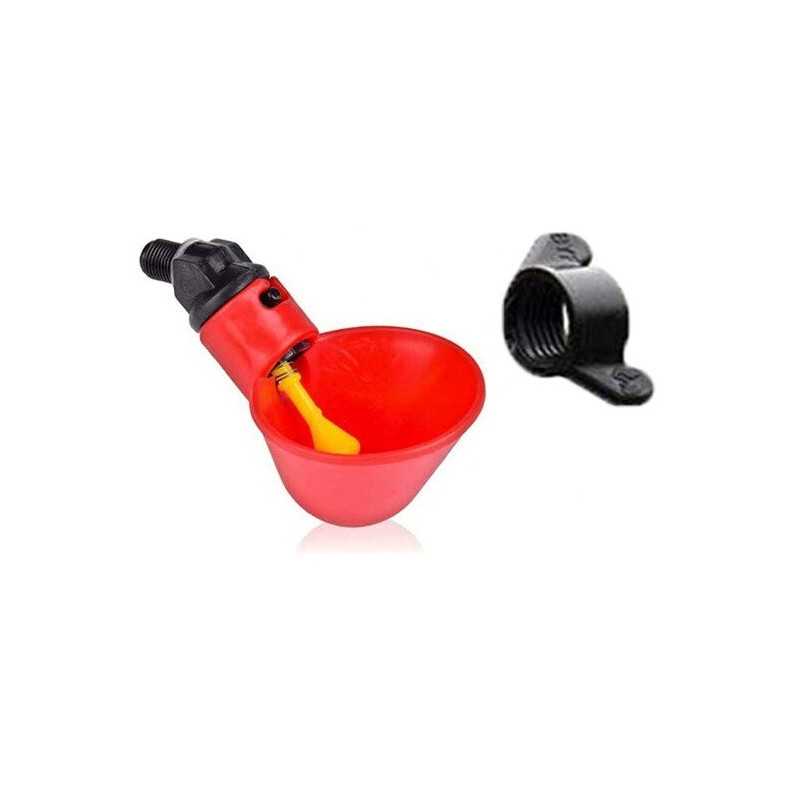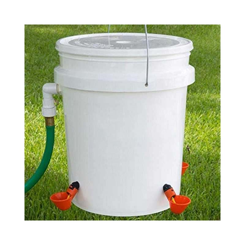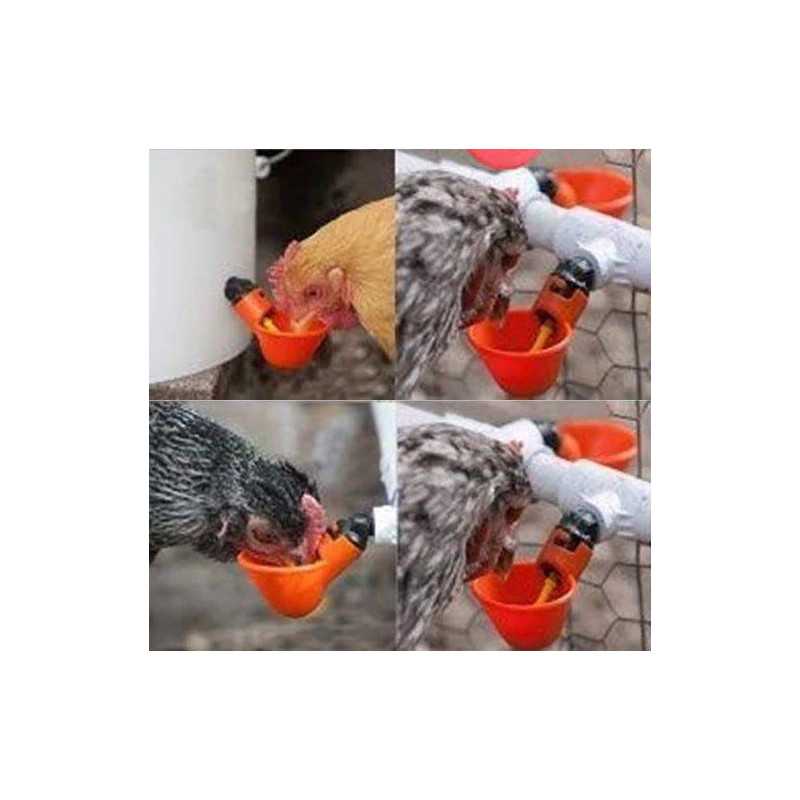 When the chickens press the yellow trigger, the feeder valve automatically drains the water into a plastic cup that is made of durable ABS material. It can be used for chickens, pigeons, birds, quails and other pets.