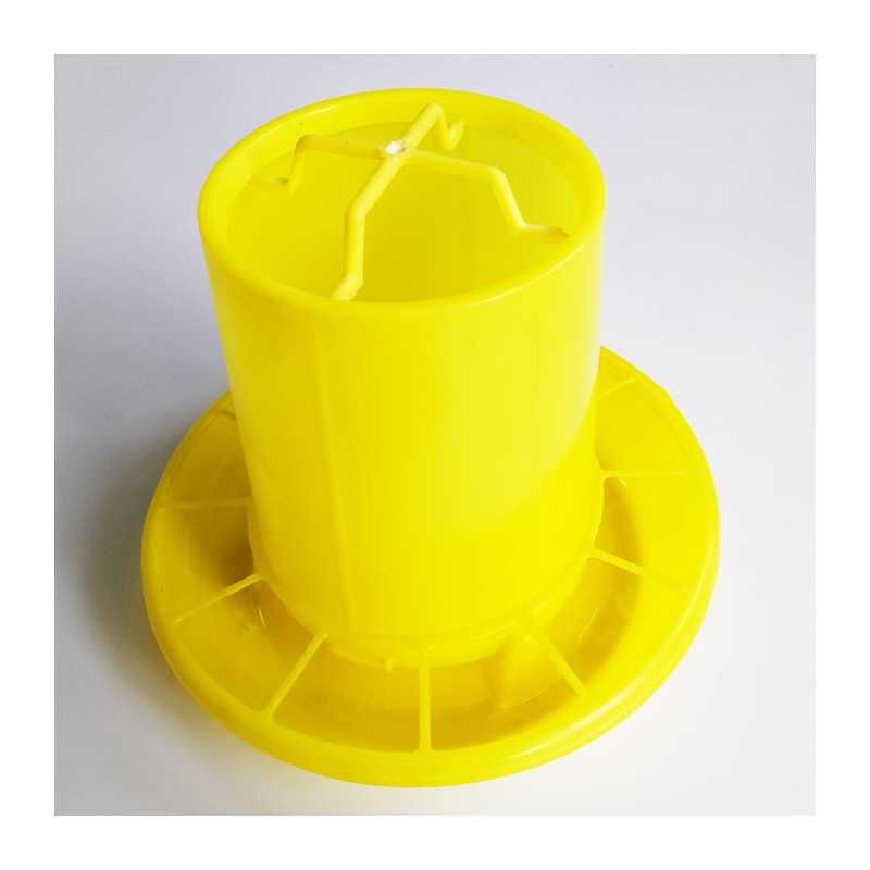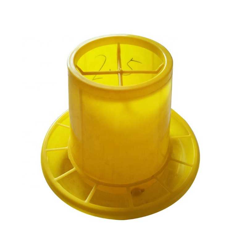 Plastic feeder for poultry with the container. Just inside the embankment and gradually falling out, the food gets to the bottom of the bowl. This would give your poultry feed constantly and you do not have to frequently refill the powder.
