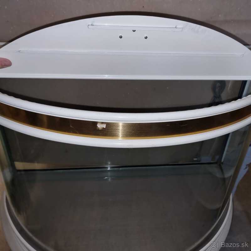 Sklenené akvárium s objemom 200l (100cm šírka, výška 60cm). Horný a spodný rám s krytom je kovový ( nie umelina). Svietenie je prostredníctvom neonovej trubice ( nie je súčasťou ). Akvárium sa predáva bez nábytku.